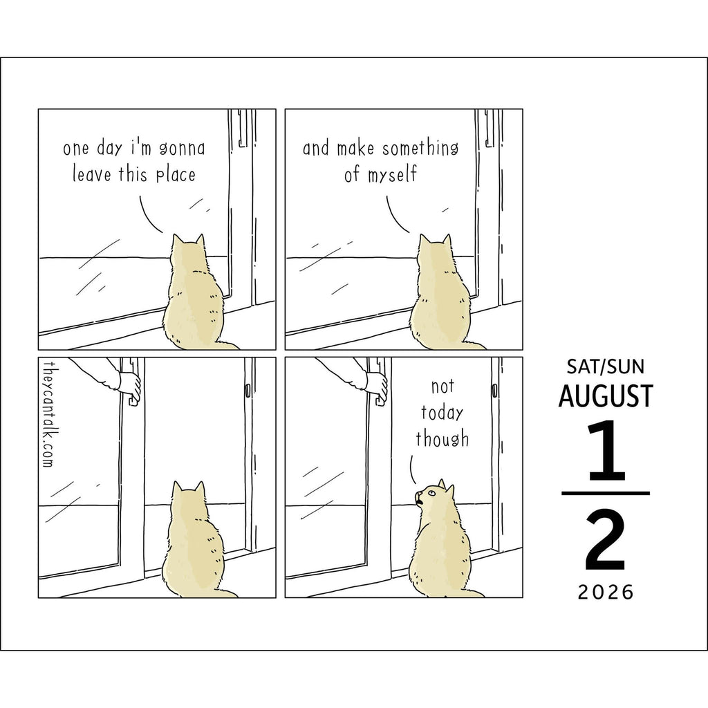 Donnant vie aux tourments amoureux des oiseaux de jardin, à l'exubérance débridée des chiens domestiques, aux difficultés de discipline des baleines bleues et autres petits tracas du quotidien, le calendrier « They Can Talk Comics 2026 » est un exercice quotidien divertissant qui nous permet d'écouter aux portes les plus drôles de nos amis les animaux. Caractéristiques : sans plastique à usage unique ; format 13,7 x 11,4 cm ; support chevalet en carton recyclable pour une présentation sur un bureau ou une table ; imprimé sur du papier certifié FSC® avec de l'encre à base de soja ; pages détachables en couleur ; verso vierge pour prendre des notes ou faire des listes de courses ; indication du jour et de la date sur chaque page ; pages regroupant les week-ends ; jours fériés et célébrations officiels dans le monde. Les bandes dessinées quotidiennes, à la fois drôles et touchantes, de Jimmy Craig (@theycantalkcomics) transforment les aboiements, miaulements, meuglements, chants d'oiseaux et de baleines, ainsi que les divers klaxons, bêlements, gargouillis et bourdonnements du règne animal en blagues idiotes et subtiles.