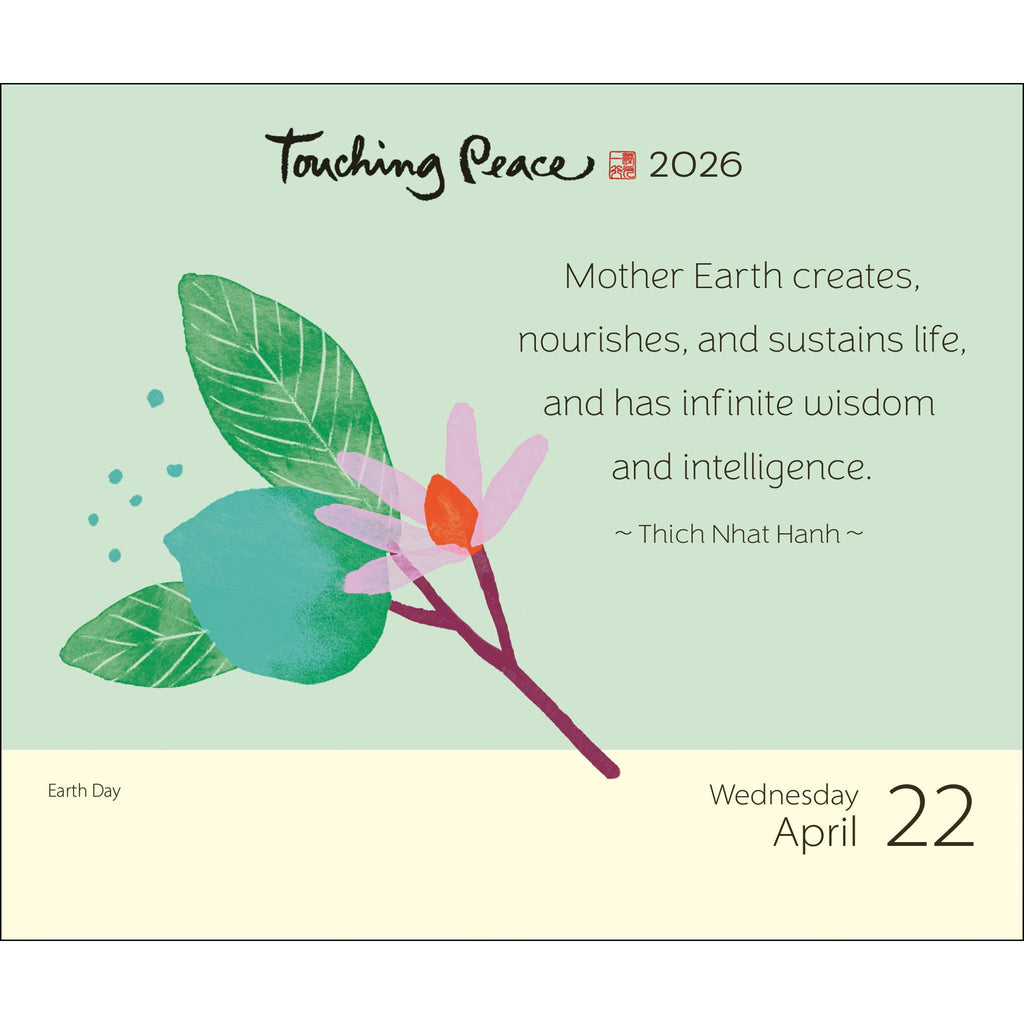 Des illustrations de la nature, symboles de spiritualité orientale, accompagnent les paroles de sagesse. Les aquarelles apaisantes de l'artiste contemporaine Marisol apportent une touche de couleur relaxante à chaque page du calendrier. Caractéristiques : Sans plastique à usage unique. Format de la page : 13,7 x 11,4 cm. Format de la boîte : 15 x 12,7 cm. Support chevalet en carton recyclable pour une présentation sur un bureau ou une table. Imprimé sur du papier certifié FSC® avec de l'encre à base de soja. Pages détachables en couleur. Verso vierge pour les notes ou les listes de courses. Date et jour indiqués sur chaque page. Pages regroupant les week-ends. Jours fériés et commémorations officiels dans le monde. Sagesse de Thich Nhat Hanh, moine bouddhiste et auteur à succès de « Le Miracle de la pleine conscience » et « Le Cœur de l'enseignement du Bouddha ». Nous plantons des arbres pour compenser notre empreinte carbone et notre consommation de ressources : plus d'un million d'arbres et ce n'est pas fini ! Approvisionné de manière durable : notre papier est fabriqué à partir d'un mélange de matériaux recyclés et de bois issu de forêts gérées durablement sur le plan social et environnemental, et est certifié Forest Stewardship Council®.