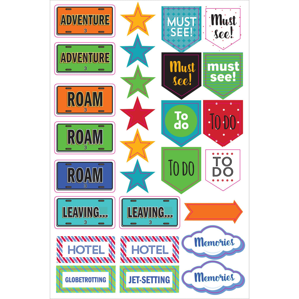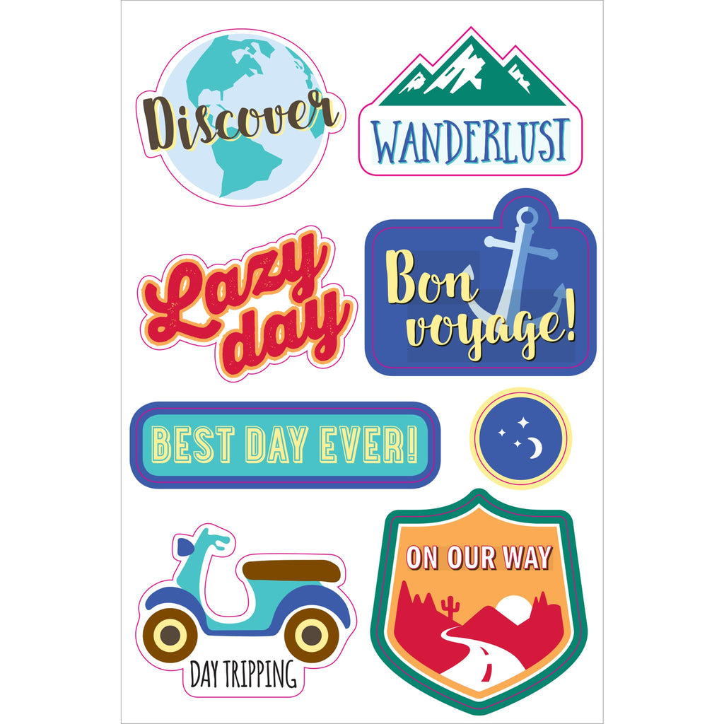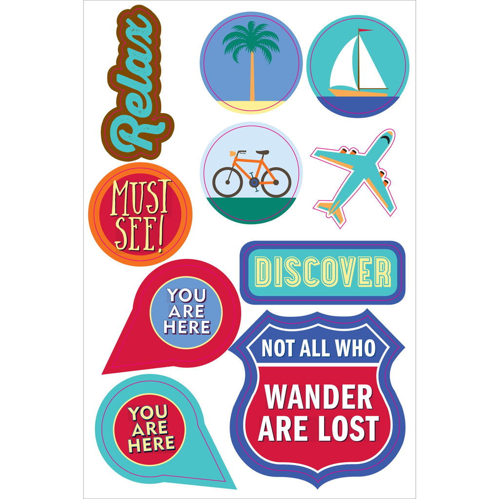 Donnez du style à vos carnets de voyage et à vos agendas grâce à ces autocollants colorés sur le thème du voyage ! Ce set comprend 12 planches et plus de 575 autocollants. Retrouvez des messages comme « Carpe diem », « Road Trip », « Offline », « Escape », « Wanderlust », « Adventure Awaits », « Scenic Route », « Are We There Yet? », « Day 1 » à « Day 14 », et bien d'autres. Des autocollants décoratifs et des symboles supplémentaires vous permettent de laisser libre cours à votre créativité et de personnaliser vos créations. Parfaits pour tous les calendriers, agendas et carnets. Ces autocollants se glissent facilement dans les pochettes arrière des agendas Peter Pauper Press et de la plupart des carnets.