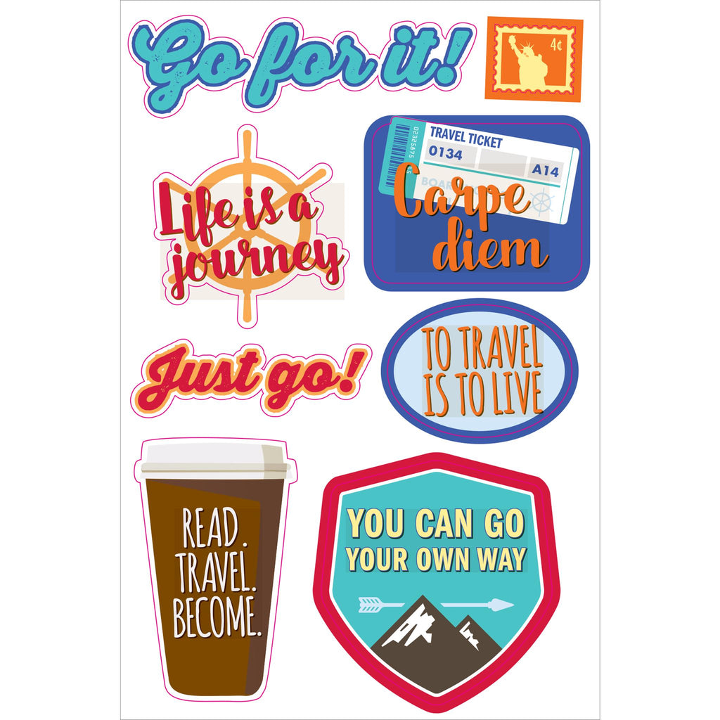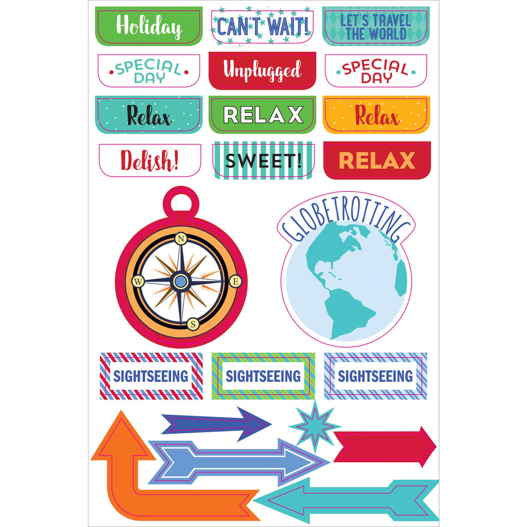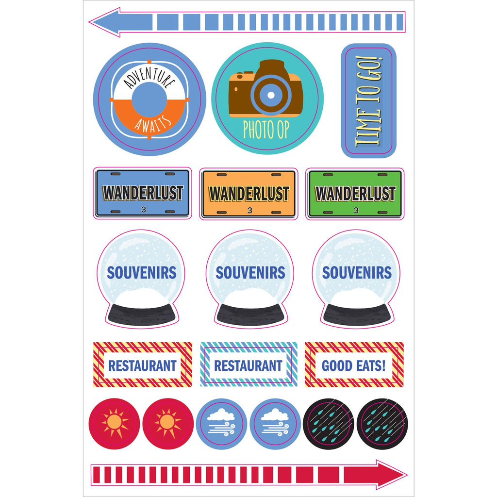 Donnez du style à vos carnets de voyage et à vos agendas grâce à ces autocollants colorés sur le thème du voyage ! Ce set comprend 12 planches et plus de 575 autocollants. Retrouvez des messages comme « Carpe diem », « Road Trip », « Offline », « Escape », « Wanderlust », « Adventure Awaits », « Scenic Route », « Are We There Yet? », « Day 1 » à « Day 14 », et bien d'autres. Des autocollants décoratifs et des symboles supplémentaires vous permettent de laisser libre cours à votre créativité et de personnaliser vos créations. Parfaits pour tous les calendriers, agendas et carnets. Ces autocollants se glissent facilement dans les pochettes arrière des agendas Peter Pauper Press et de la plupart des carnets.