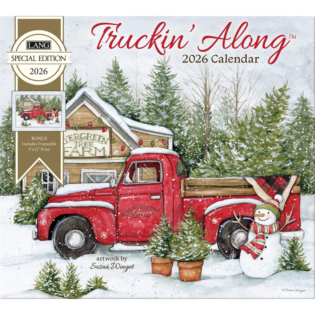 Le calendrier mural édition spéciale « Truckin' Along 2026 » présente 12 mois de peintures de camions rouges de Susan Winget, mettant en scène des paysages familiers de la campagne et de la maison. Les calendriers muraux LANG offrent des images mensuelles en couleur, un papier élégant gaufré lin et un œillet en laiton pour l'accrocher. Un tirage bonus de 23 x 30 cm, encadrable, est inclus pour décorer votre intérieur toute l'année !