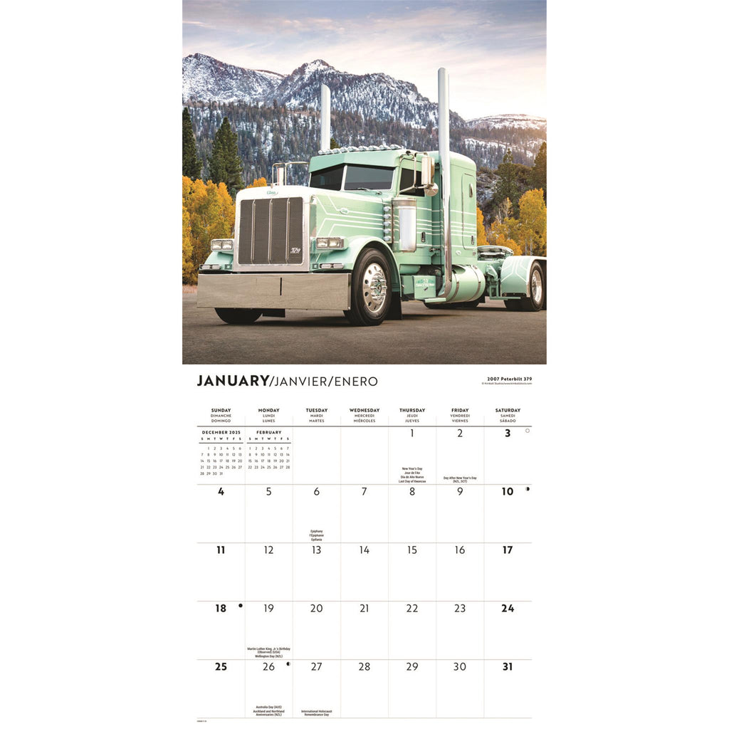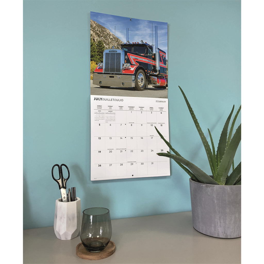 Ce magnifique calendrier mural Camions 2026 présente une collection de camions impressionnants, tels que le Mack Anthem 2019 et le Freightliner Coronado 2016. Chaque camion rutilant se détache sur un fond saisissant. Cadeau idéal pour tout passionné, ce calendrier offre un espace généreux pour vos notes et rendez-vous grâce à ses grandes cases. Conçu pour être accroché au mur, il comprend un agenda supplémentaire de quatre mois, de septembre à décembre 2023, ainsi qu'un calendrier sans emballage plastique.