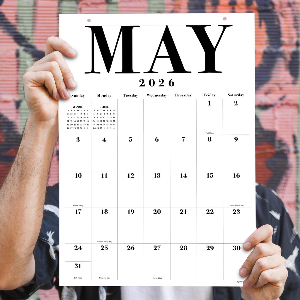 La simplicité n'est pas synonyme d'ennui ! L'écriture artistique met en valeur les titres mensuels en gras noir sur ce calendrier d'art professionnel et élégant. Les pages détachables mensuelles offrent un grand espace pour noter plusieurs rendez-vous quotidiens et visualiser le mois précédent et le mois suivant. Couvrant la période de janvier à décembre 2026, ce calendrier est imprimé sur un papier d'art de qualité supérieure qui sublime les illustrations et facilite l'écriture et l'effacement. Ce calendrier d'art de 30,5 cm (l) x 43 cm (h) est au format vertical et peut être posé à plat sur un bureau ou accroché au mur grâce à ses perforations. Les cases mesurent 4 cm (l) x 5,7 cm (h). Il est livré avec des protections d'angle et est entièrement recyclable. Imprimé sur du papier certifié FSC.