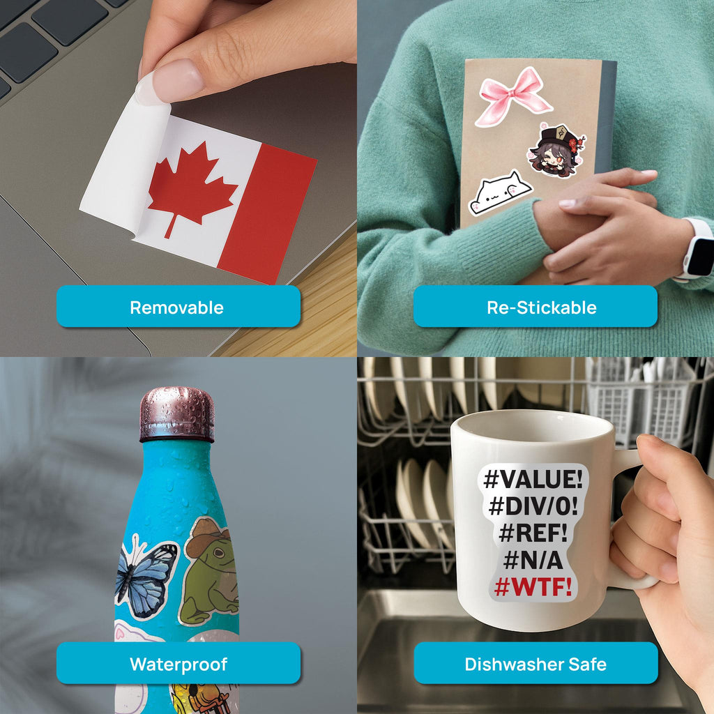 Libérez votre créativité, où que vous soyez ! La créativité ne devrait pas être confinée, alors pourquoi ne pas l'emporter partout avec vous ? Que vous soyez étudiant et souhaitiez personnaliser votre ordinateur portable, artiste et exprimiez votre style, ou professionnel et souhaitiez ajouter une touche personnelle à vos objets du quotidien, nos stickers en vinyle révèlent votre individualité. Résistants, imperméables et repositionnables, nos stickers vous suivent partout. Ordinateurs portables, gourdes, coques de téléphone, carnets, gobelets… vos objets préférés deviennent le reflet audacieux de votre personnalité. Avec des designs allant des plus vibrants et exubérants aux plus sobres et élégants, nous célébrons l'expression de soi. Rejoignez-nous et transformez vos objets du quotidien en pièces uniques.