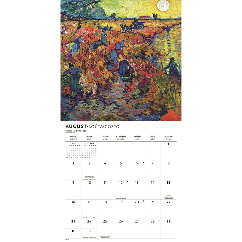 Vincent van Gogh a profondément marqué l'art du XXe siècle. Ses peintures restent une source d'inspiration pour les artistes d'aujourd'hui. Ce calendrier mural 2026 présente certaines de ses œuvres les plus célèbres. Ce calendrier est sans emballage plastique.