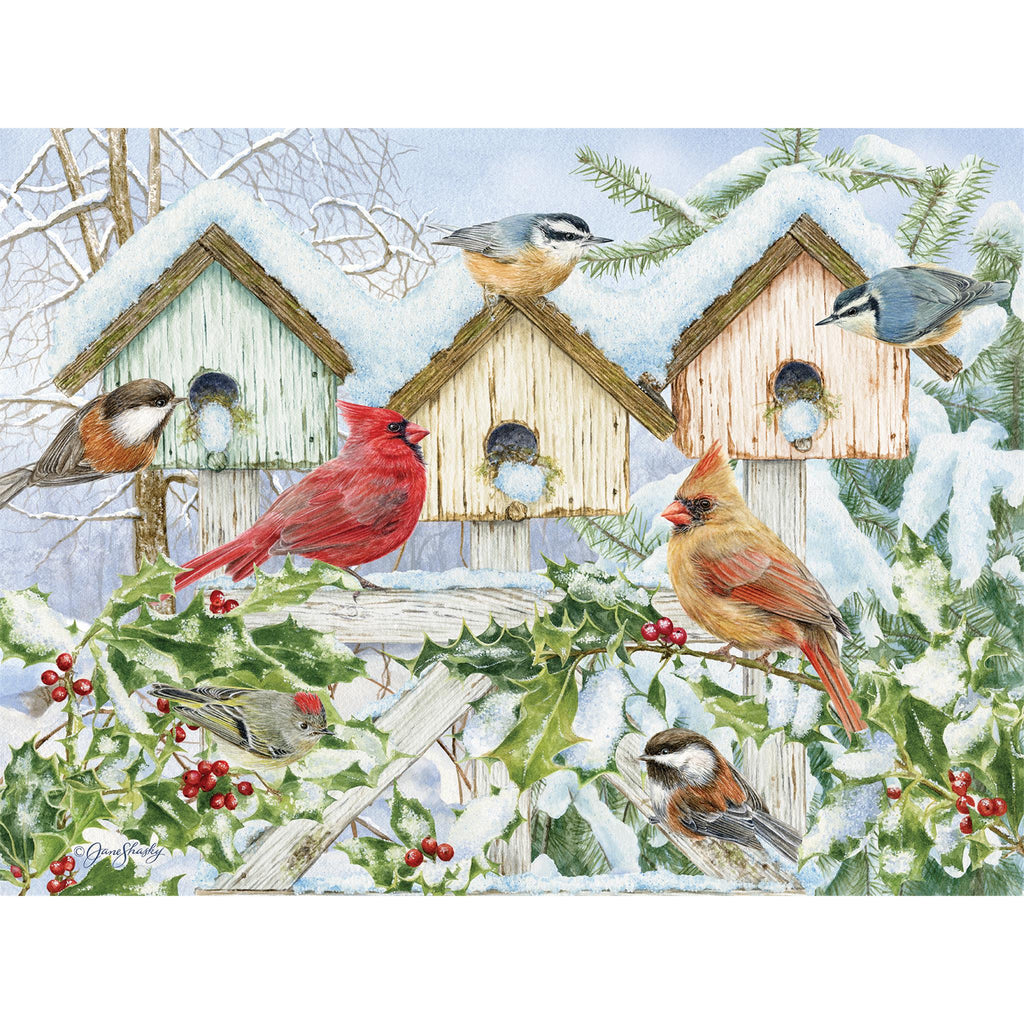 Cardinaux, sittelles et mésanges se rassemblent sur le houx pour choisir leur nichoir préféré. Ce puzzle facile à manipuler, avec ses pièces extra-larges, est idéal pour les seniors qui ont plus de mal à manipuler les petites pièces, mais qui souhaitent profiter d'images qui leur plaisent. Les puzzles Cobble Hill proposent des pièces aux formes aléatoires originales, ce qui rend chaque puzzle unique. Un poster pratique est inclus.