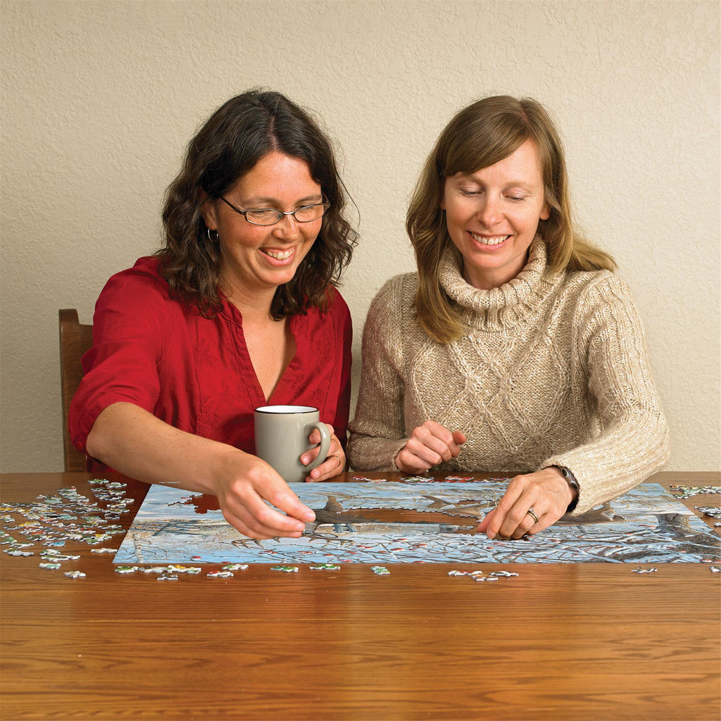 Une famille de cerfs traverse le champ enneigé du fermier. Quel est ce bruit ? Ils s'arrêtent et regardent, intrigués par un son au loin. Relevez le défi avec ce puzzle de 500 pièces, une illustration de la peintre animalière Persis Clayton Weirs. Les puzzles Cobble Hill proposent des pièces aux formes aléatoires originales : aucune n'est identique. Un poster pratique est inclus.