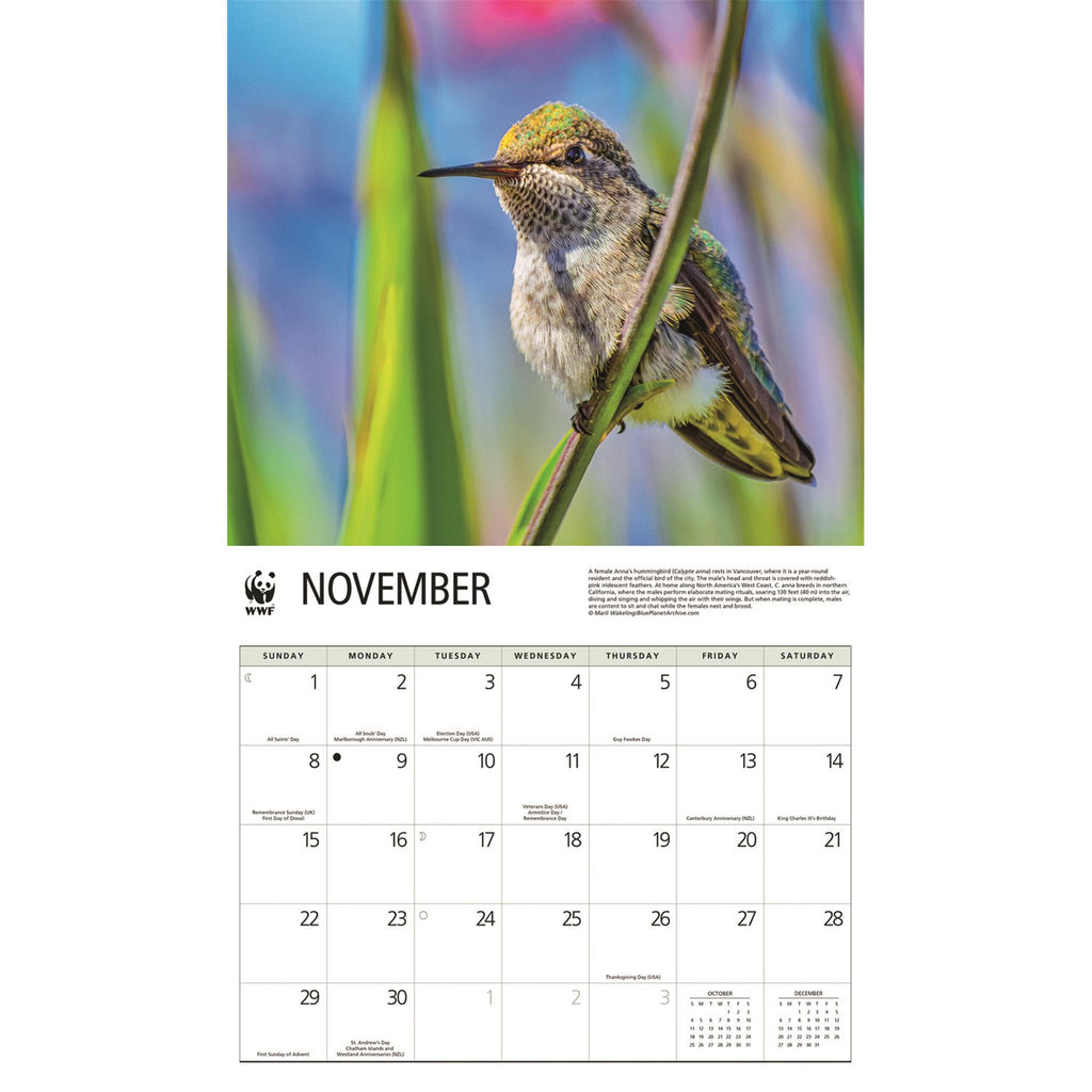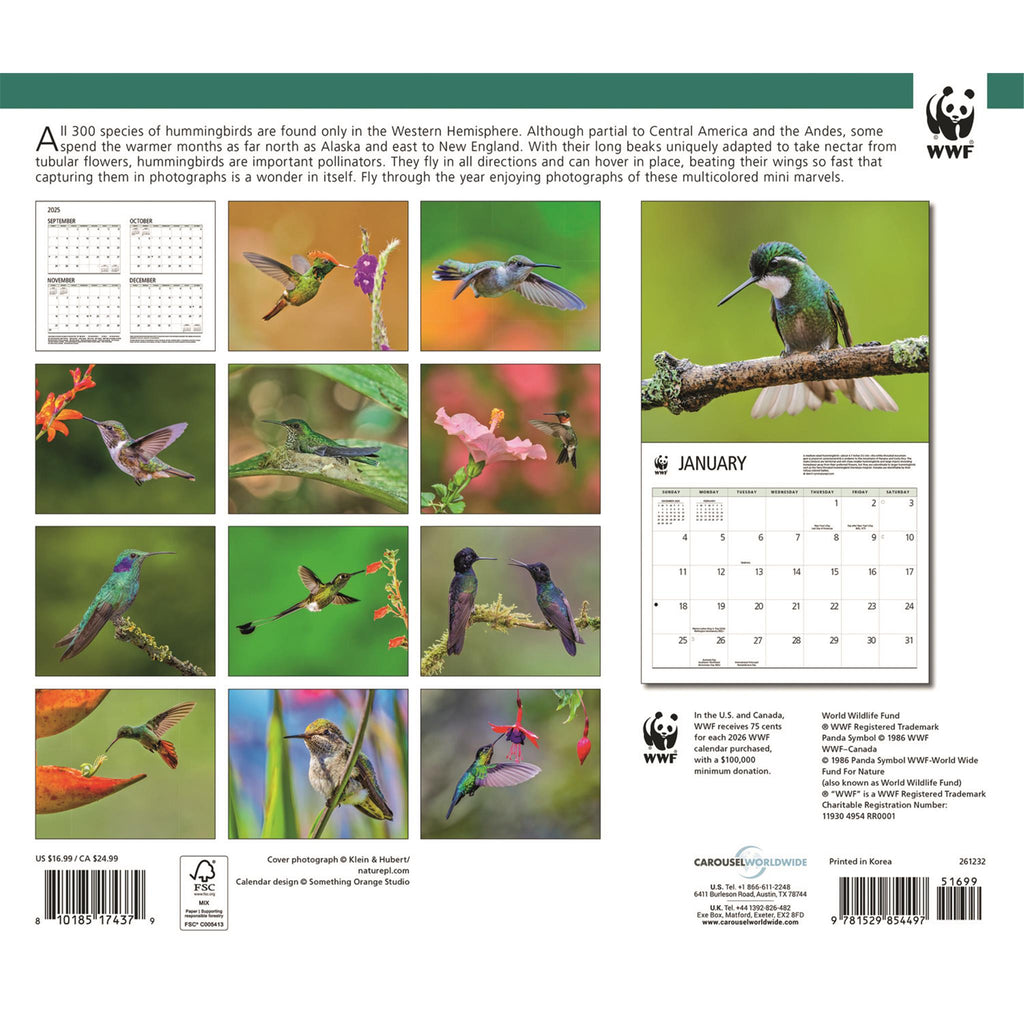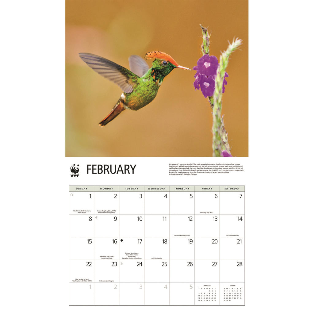 Plongez dans l'univers fascinant des colibris avec le calendrier mural Colibris du WWF, disponible exclusivement sur Calendars.com ! Ces minuscules oiseaux, dont certains pèsent moins d'une pièce de 10 centimes, nous captivent par leurs couleurs éclatantes et leur vol rapide. Notre calendrier met en scène ces magnifiques créatures en plein vol, dévoilant leur plumage somptueux pour votre plus grand plaisir tout au long de l'année.