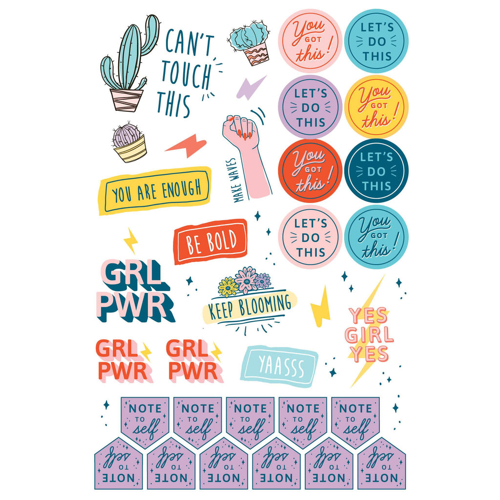 Personnalisez votre agenda ou votre journal avec plus de 500 autocollants inspirants pour les femmes fortes, prouvant que la force est la nouvelle beauté !
